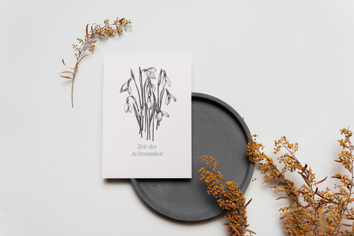 Unter dem Motto „sich Zeit nehmen“ entstand eine dreiteilige Kartenserie mit fein abgestimmten Grafiken und Texten, die Besinnlichkeit und Wertschätzung transportiert. Die Karten wurden hochwertig im Offsetdruck produziert, inklusive Vorschlag für eine passende Veredelung.